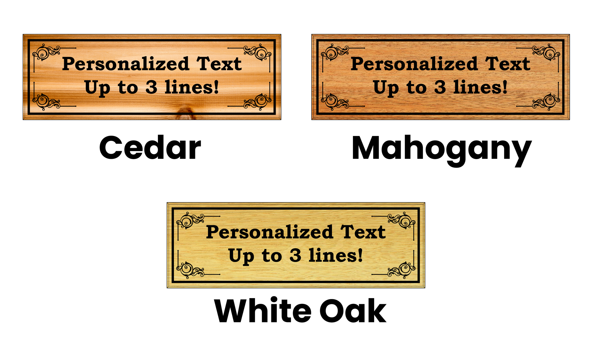 Cedar, Mahogany or Quarter-Sawn White Oak wood. You'll have the choice when designing your sign.