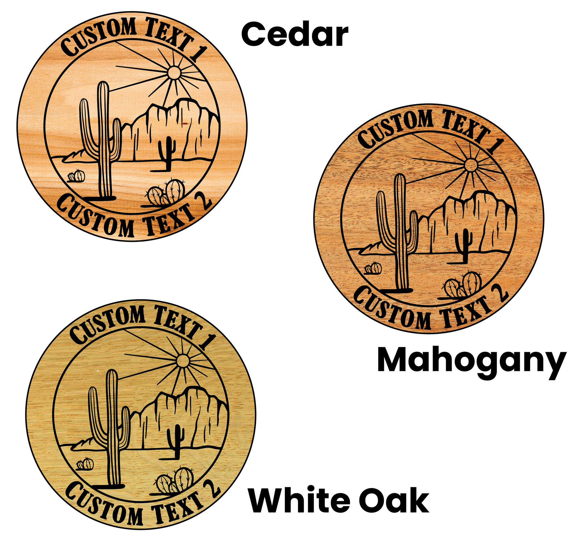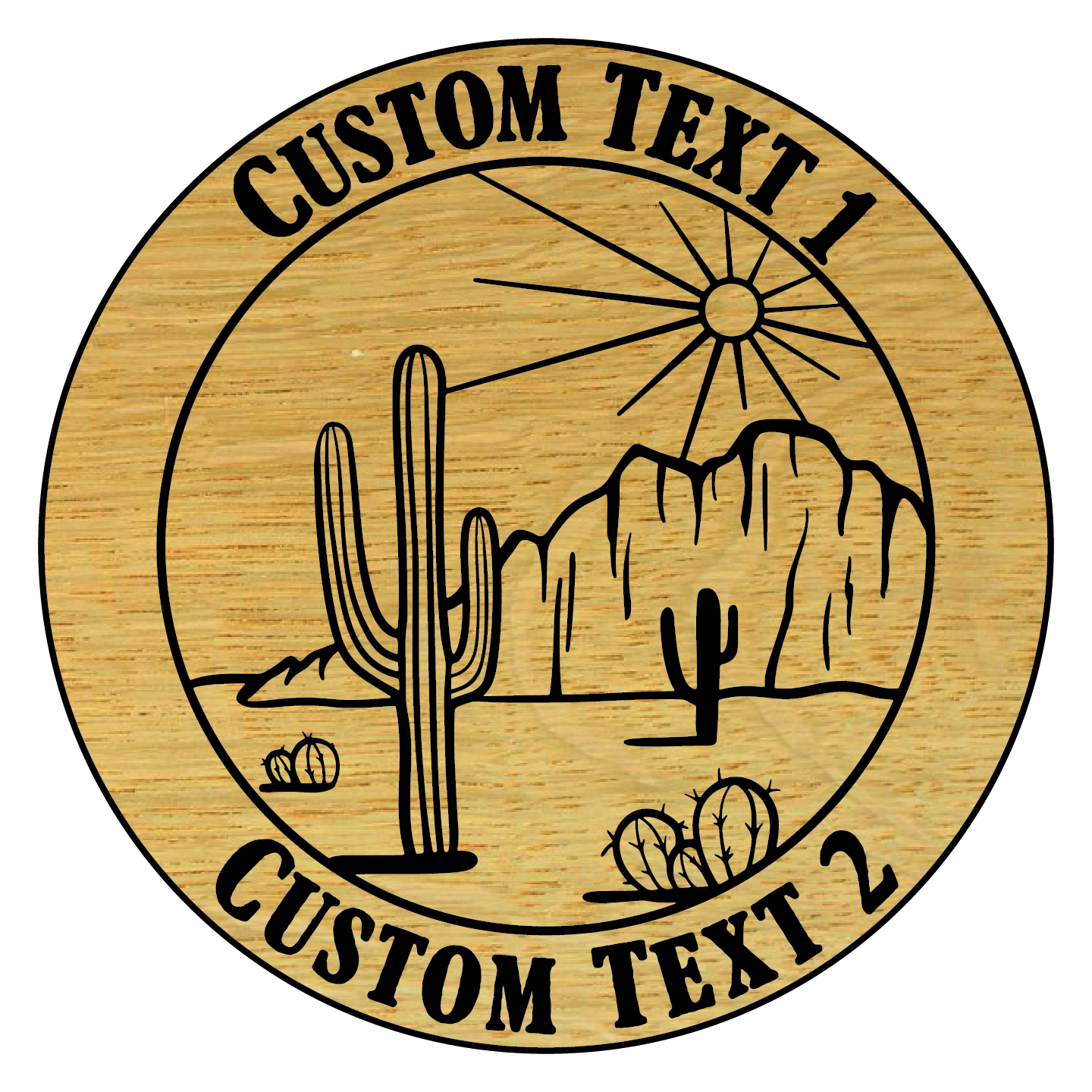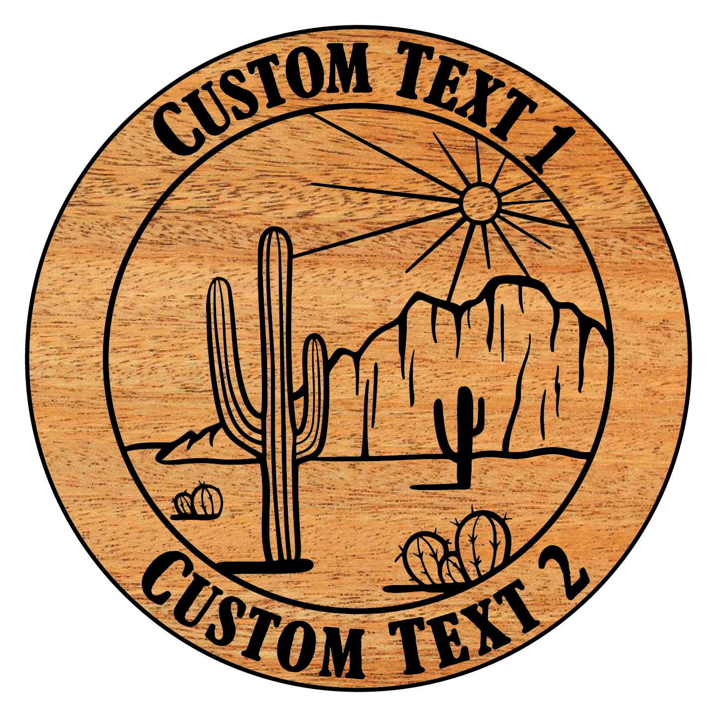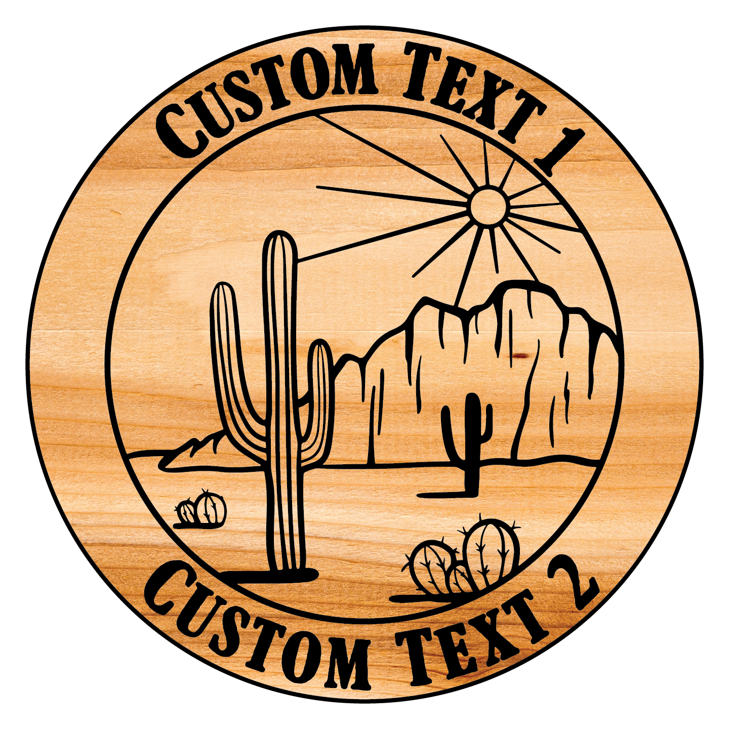 Custom Carved Wooden Sign with Desert Landscape and Personalized Text