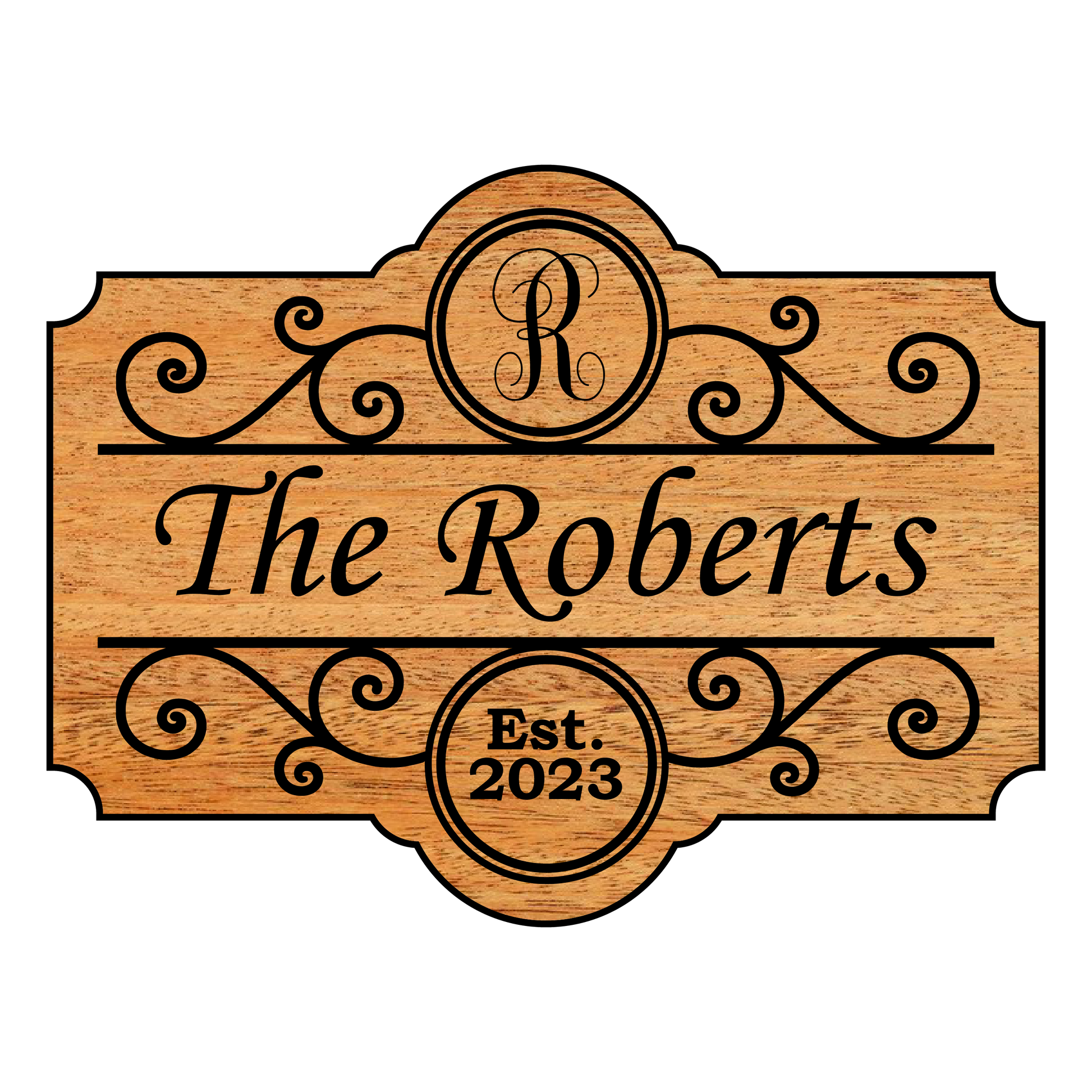 Custom Mahogany or White Oak Sign with Monogram, Family name and Est. Date