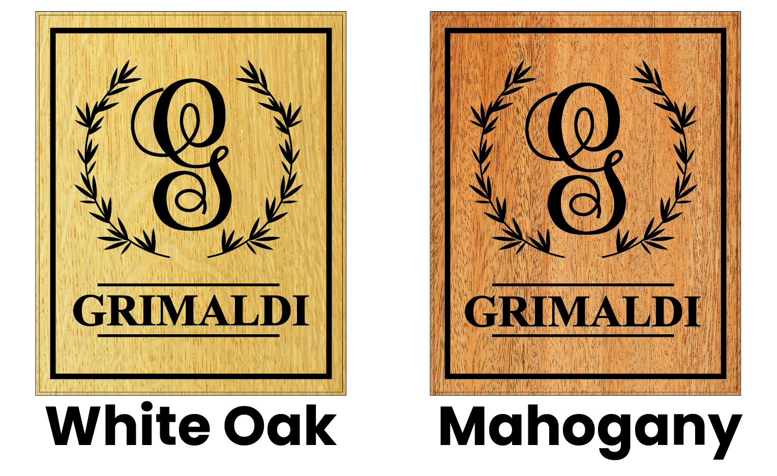 Custom Monogram and Family Name on Quarter-Sawn White Oak or Mahogany