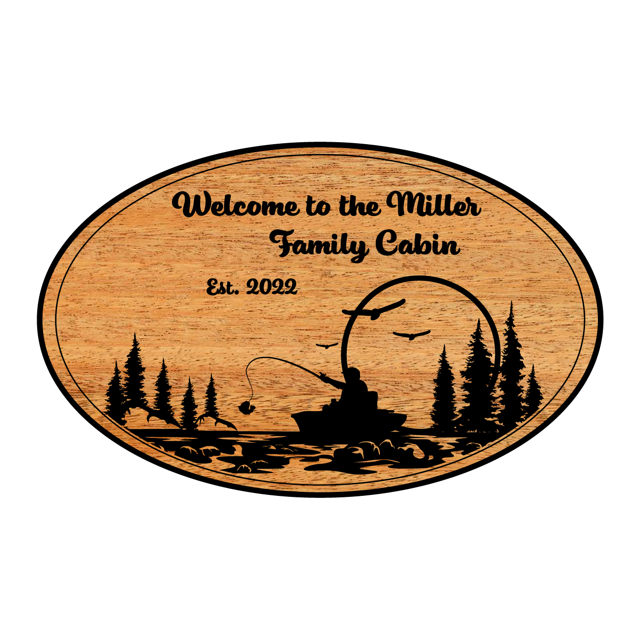Custom Wooden Sign with Fishing Scene and Personalized Text