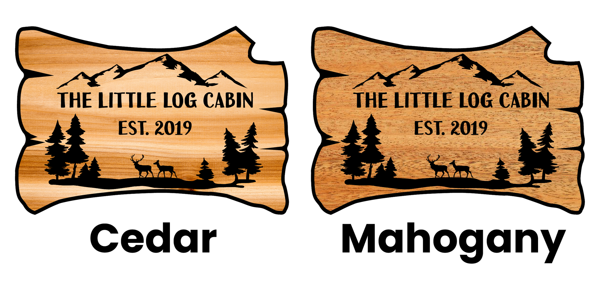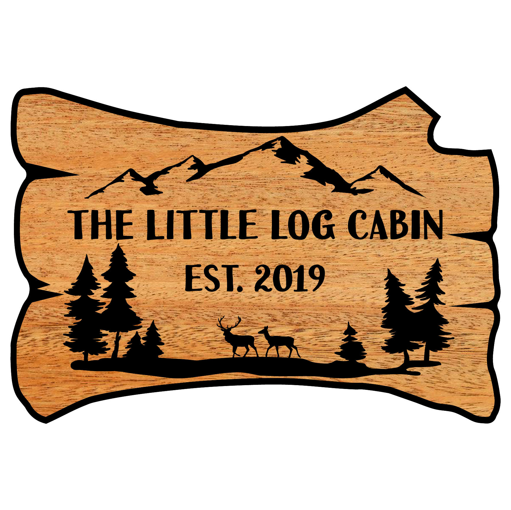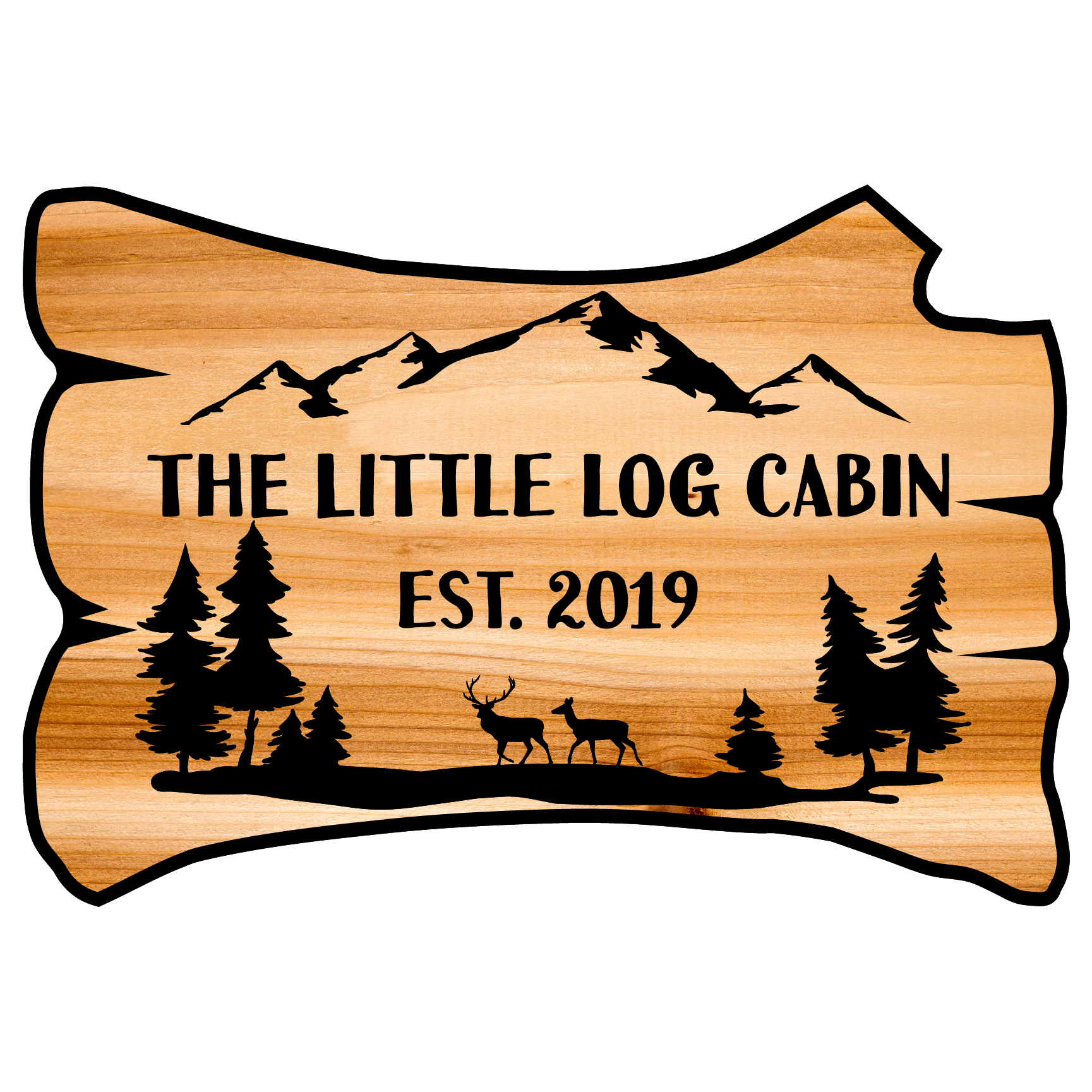 Log Shaped Personalized Wooden Sign with Deer and Landscape