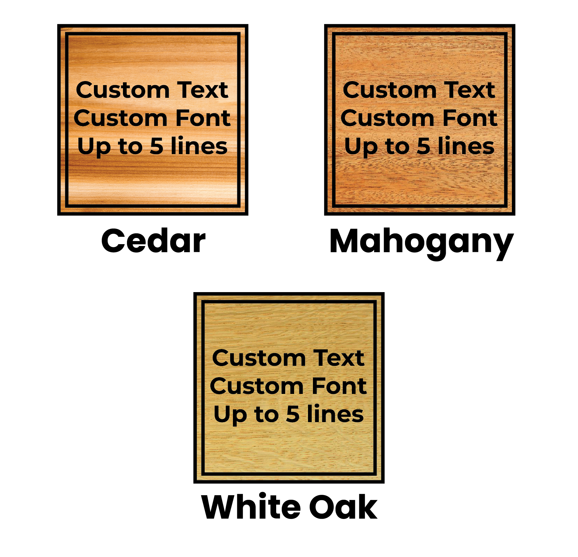 Cedar, Mahogany or Quarter-Sawn White Oak Wood.